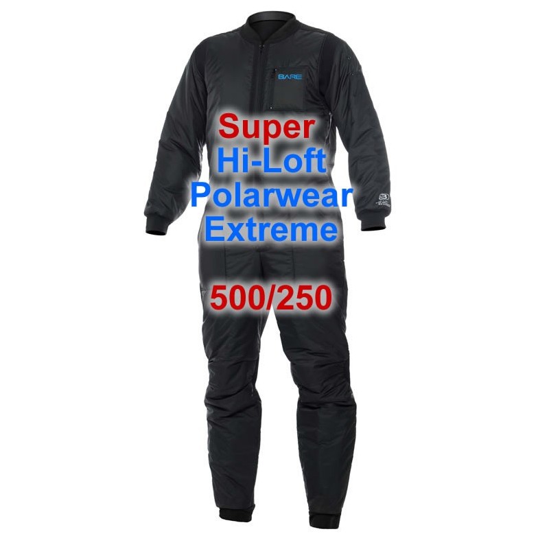Wygoda pod wodą to nie tylko suchy skafander ale również ocieplacz. Super HI-LOFT nadaj się na zimne wody i długie nurkowania dzięki dodatkowej warstwie izolacji na korpusie. Jest to najcieplejszy model ocieplacza Bare (materiał o gramaturze 250g na kończynach oraz 500g na korpusie) a mimo to nadal nurek ma swobodę ruchów oraz dobre odprowadzanie nadmiaru ciepła i wilgoci na zewnątrz. Skafander powstał z trzech warstw włókien laminowanych THERMAL-GLIDE'm i posiada wykończenia Hi-Loft Thinsulate / 200g Yukon fleece. Pod pachami znajdują się otwory wspomagające odprowadzanie wilgoci na zewnątrz. Również w okolicy zaworu spustowego, na ramieniu, znajdują się dodatkowe otwory wspomagające usuwanie nadmiaru powietrza przy szybkim wynurzaniu.